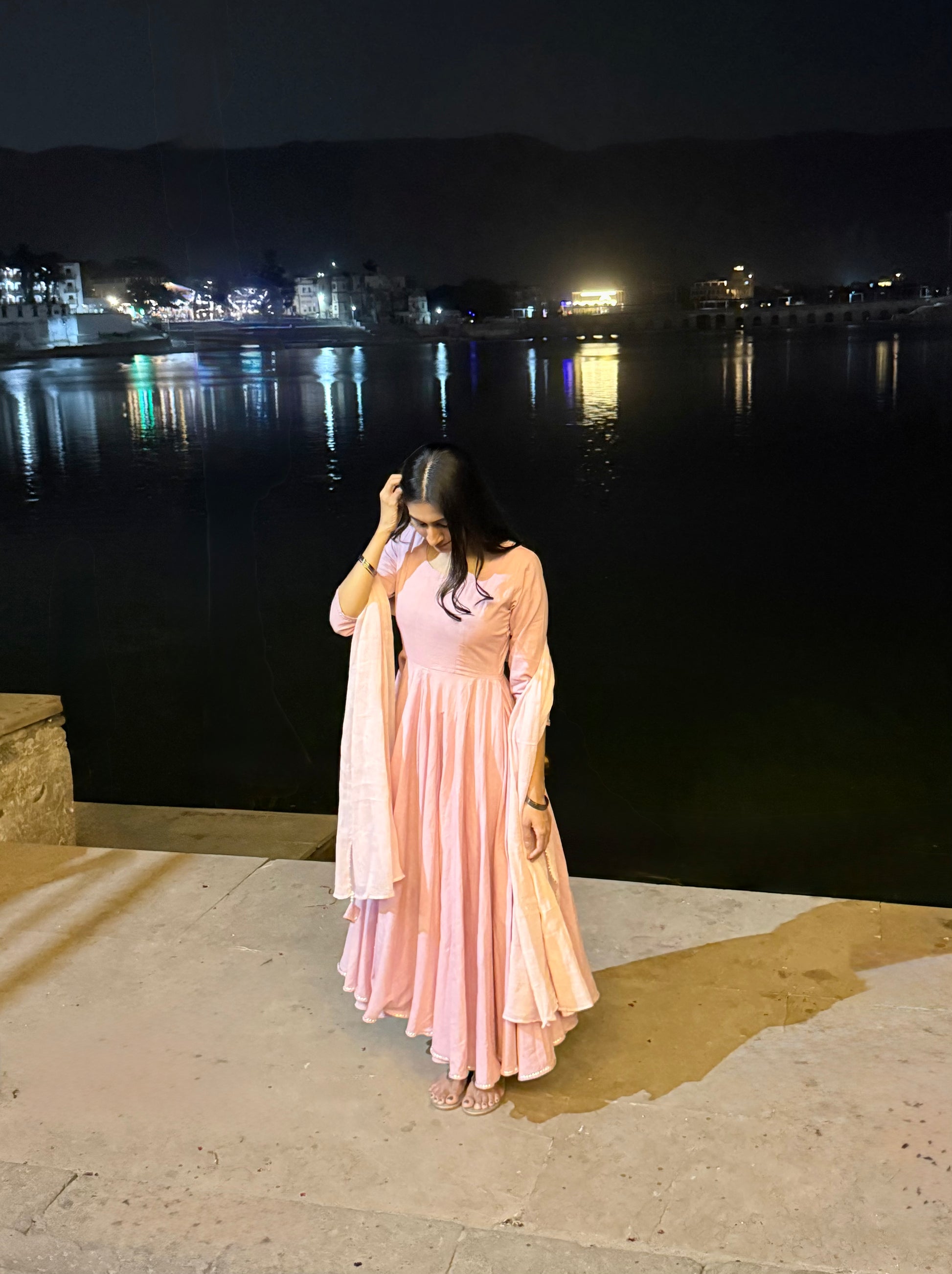 • Anarkali 8m flared kurta with a clean, minimal neckline