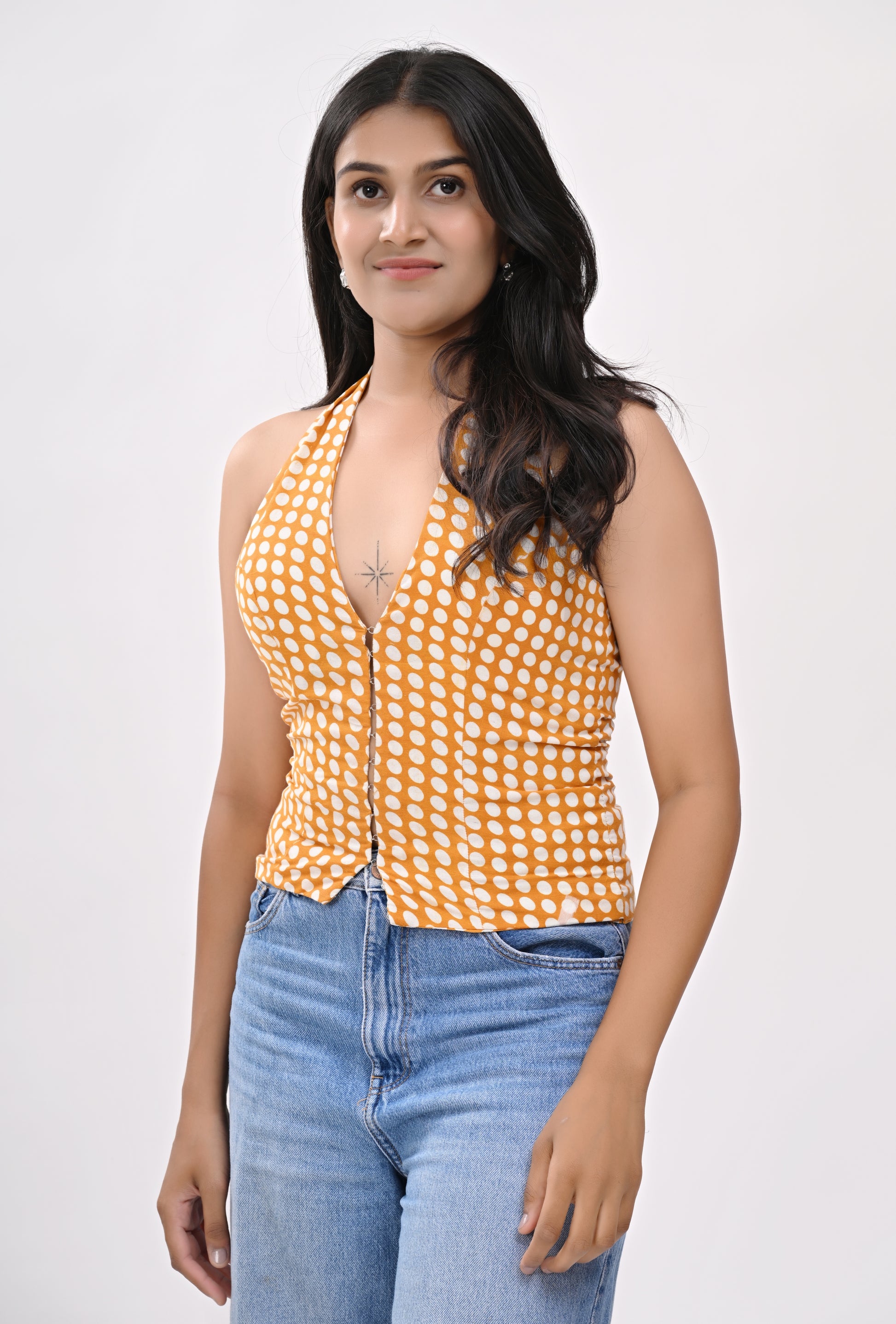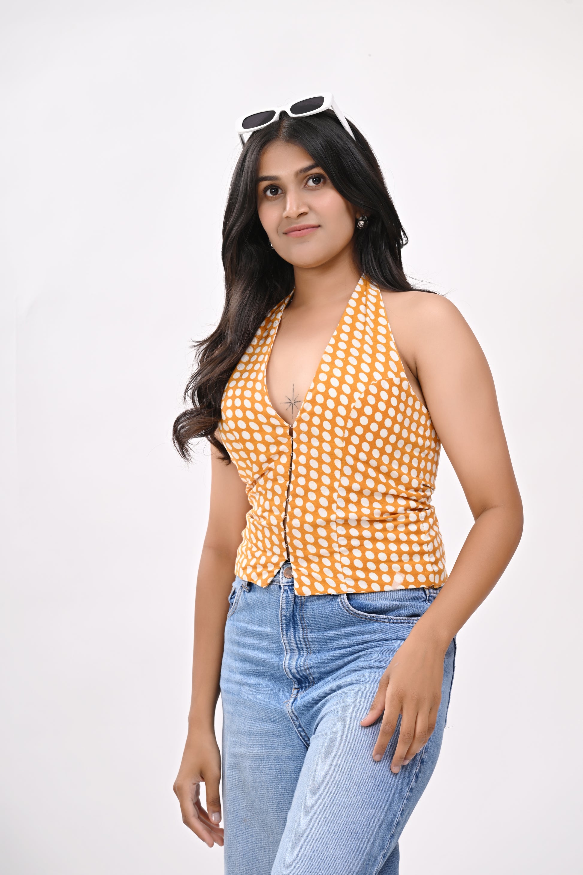 Pair with off-white trousers or denim shorts for a fun, fresh look. Add delicate earrings or a sleek bun to elevate it.