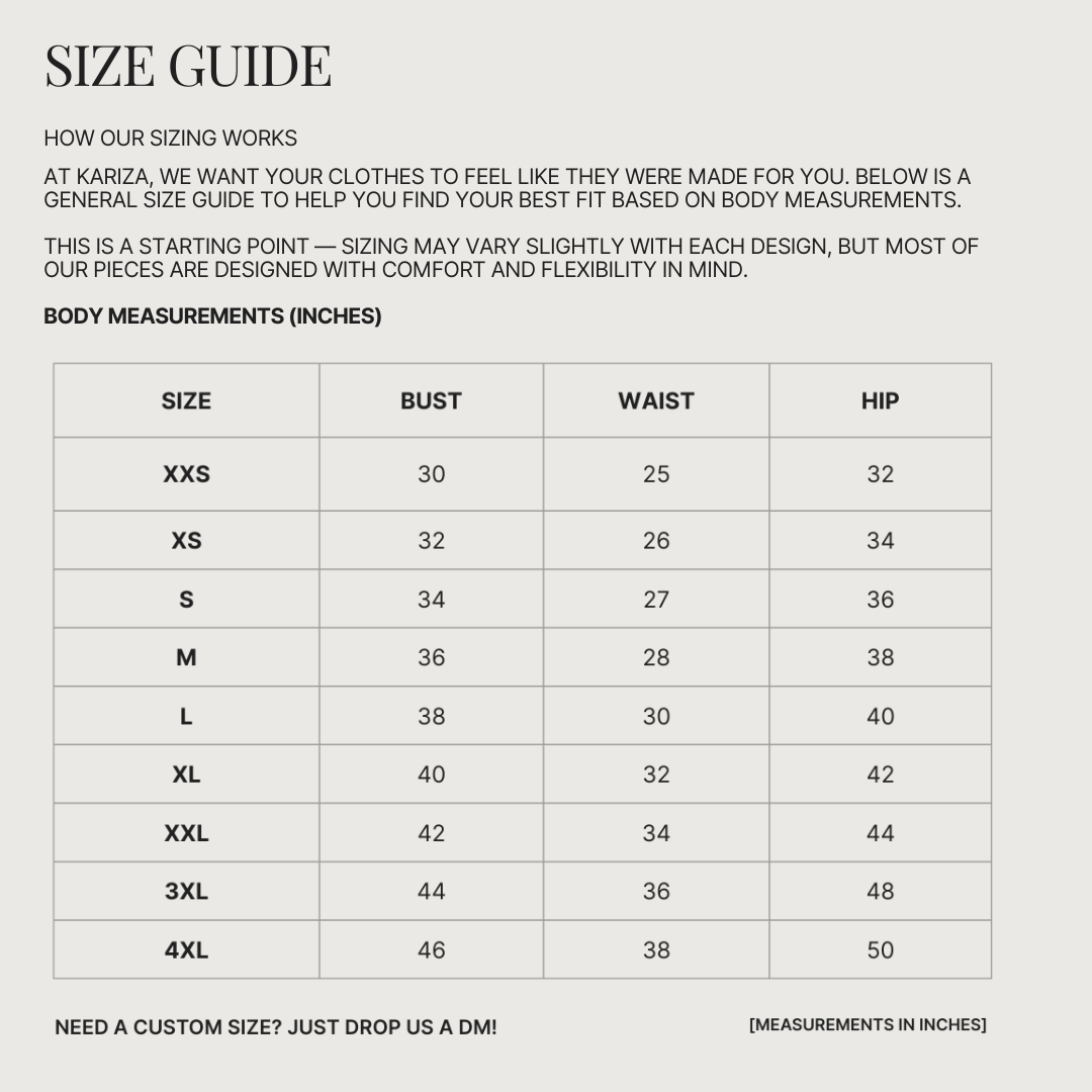 Note: Kindly share your measurements with us for a couture-like fit. Each piece comes with extra seam allowance for future alterations, ensuring it stays timeless in your wardrobe.