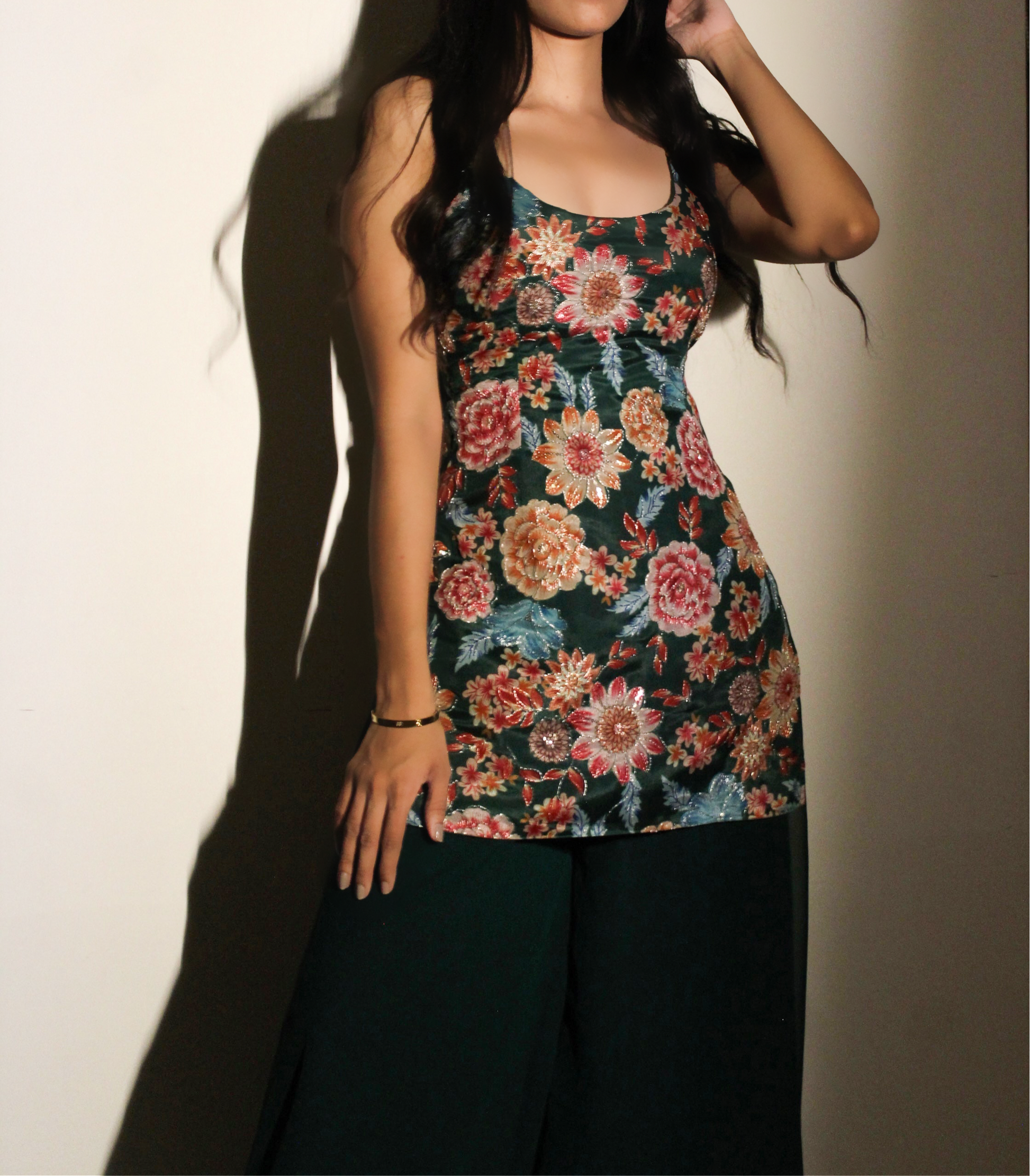 • Style: strap padded Kurti with sharara (Custom sleeves can be added/removed)