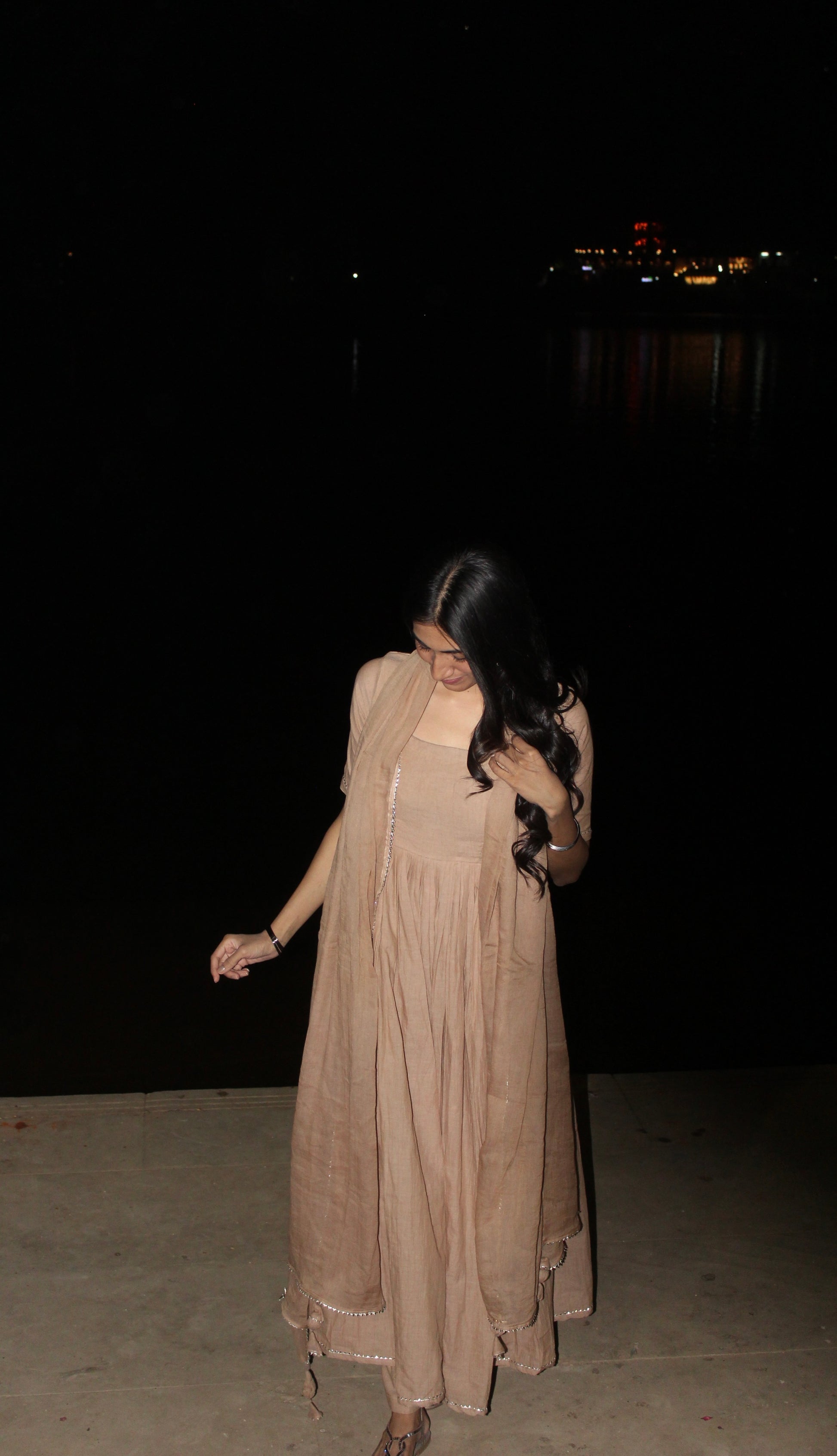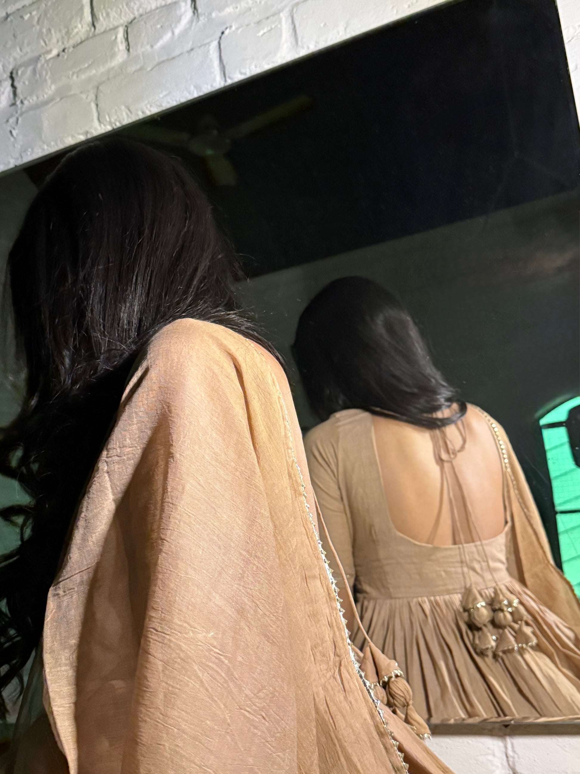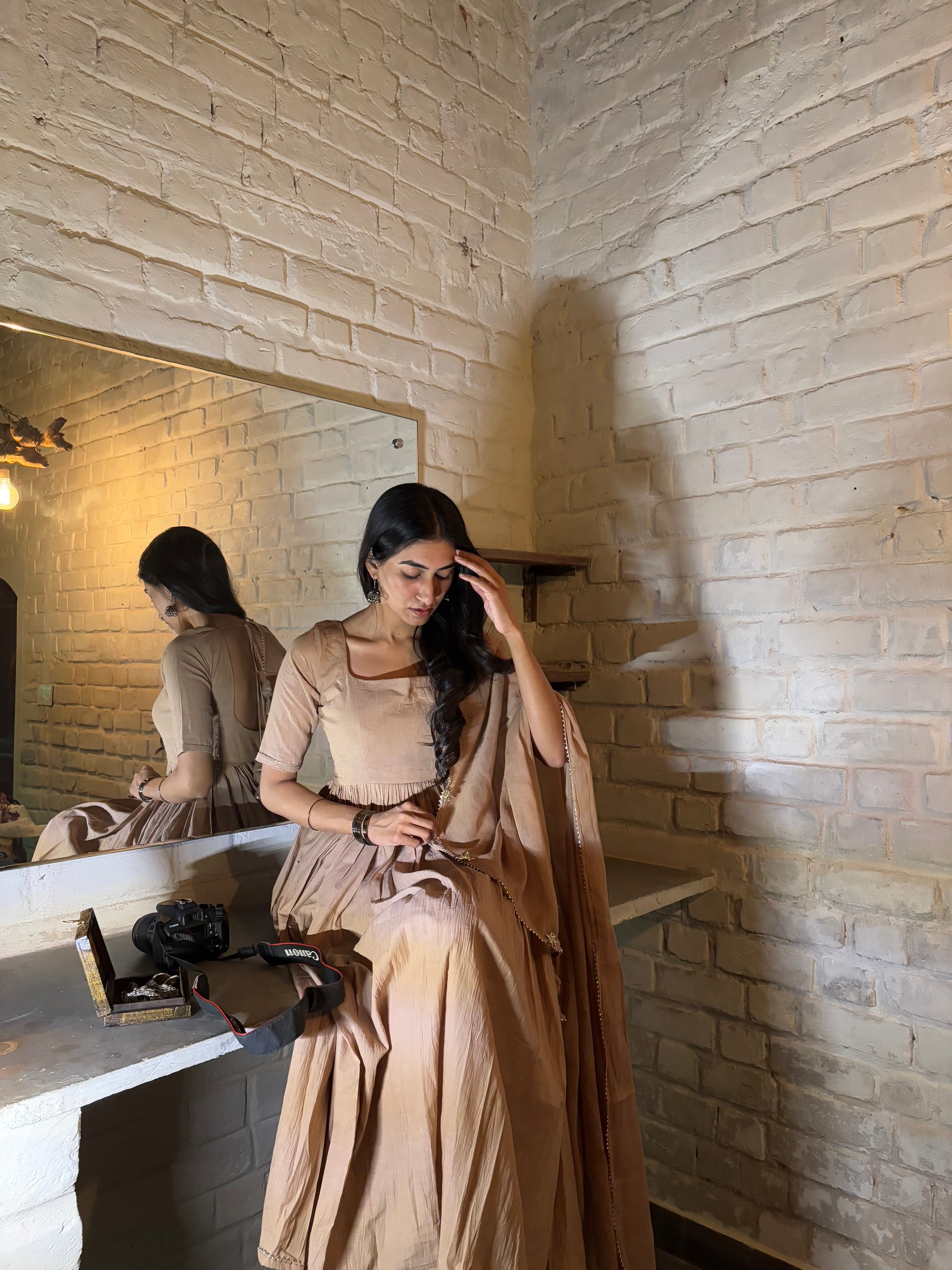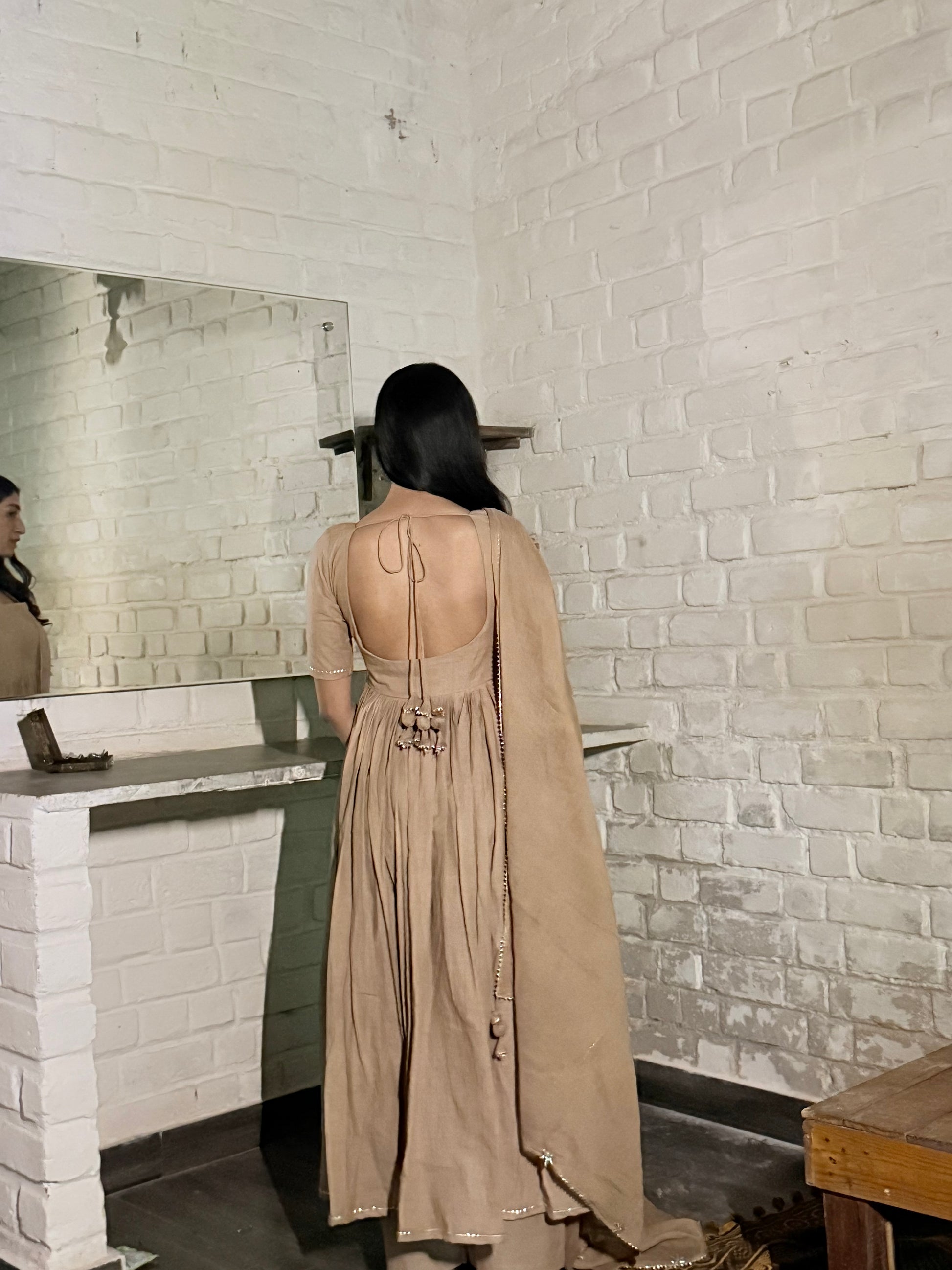 A refined take on everyday dressing, this nude brown suit set is a quiet statement in soft pastels and fluid silhouettes.